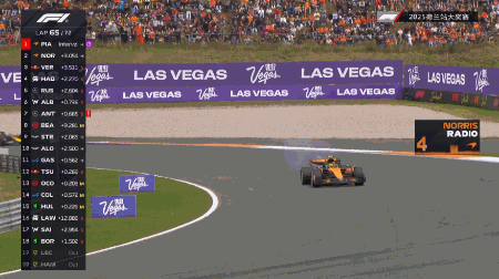 随后的比赛,领先的皮亚斯特里进入到了巡航模式,身后的诺里斯始终未能进入队友的DRS区。车阵后方,两辆没有进站的哈斯分列第10和第11名,由奥康领衔的“DRS高铁”让后方的赛车跑得越来越挣扎。