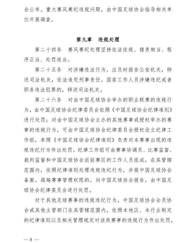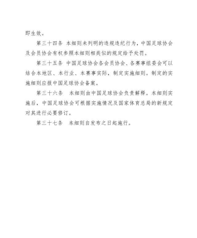 7月26日,中国足协公布《中国足球协会足球赛事活动赛风赛纪管理实施细则》,具体如下: